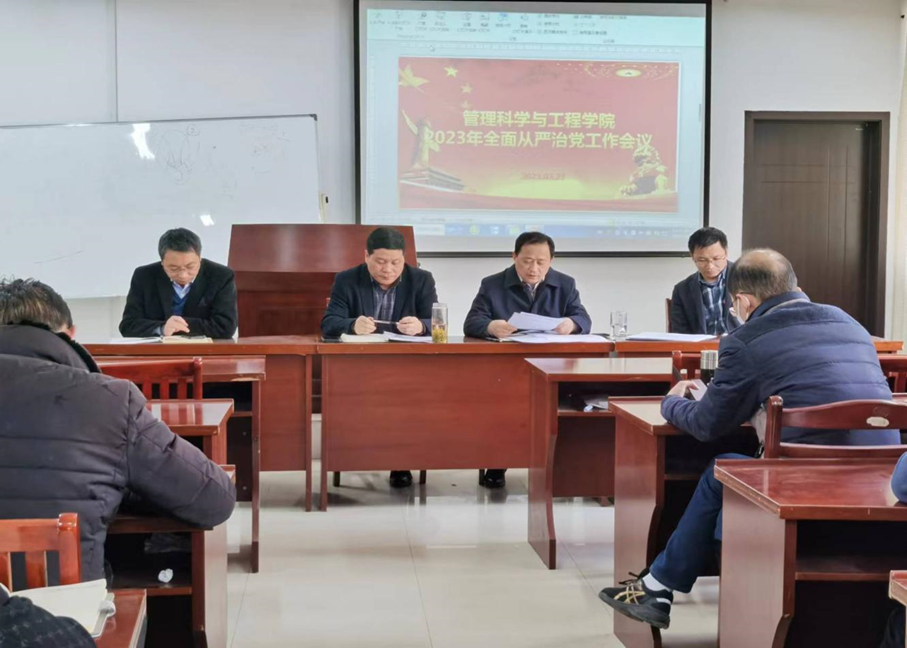 会上,汪春胜带领全体教师学习习近平总书记全面从严治党会议精神,传达学校2023年全面从严治党会精神,部署落实学院2023年全面从严治党工作。他指出,要注重教育预防,全面加强纪律建设,结合主题教育,组织党员干部开展“守纪律 讲规矩 明底线”专题教育,狠抓纪律执行。