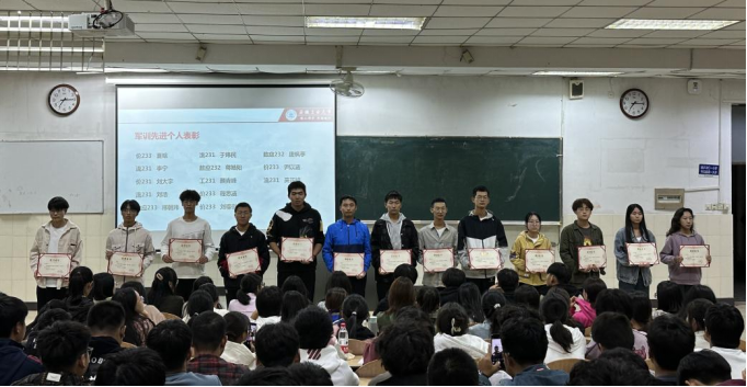 在阶教101开展2023级学习动员会暨军训总结表彰大会。会议由辅导员刘瑜、曹宇主持,鉴黄师