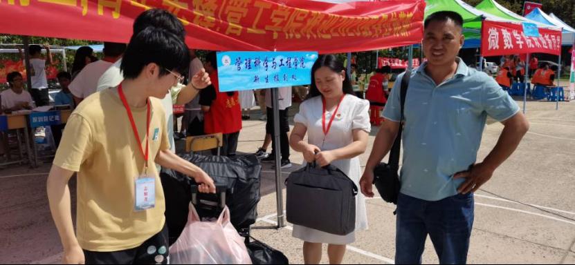迎新活动开始前,学生党支部成员在支部书记刘瑜的带领下提前部署,确保迎新工作有组织、有纪律进行。自迎新活动开始,在学院的报道点,宿舍楼下处处可见学生党员忙碌的身影。熙熙攘攘的迎新人群,党员志愿者胸前熠熠生辉的党徽,展示了每一位党员高度的责任感和昂扬的精神面貌。他们有条不紊地带领新生办理入学手续,帮助拿行李,帮助他们熟悉校园。