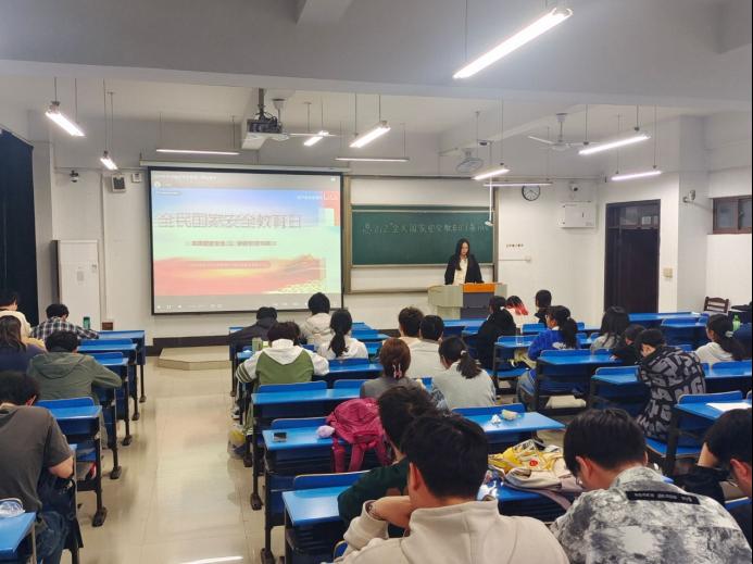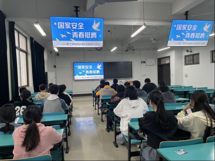 活动期间,各班级团支书带领同学们深入学习习近平总书记关于总体国家安全观的重要论述,通过ppt展示、案例讲解的方式重点介绍了“国家安全日由来”,“国家安全应当包含哪些方面”、“青年学子如何以行动维护国家安全”等内容。同时,各班级组织集中观看相关宣传片和专题报道,认真开展总体国家安全观专题学习研讨,引导同学们自觉守法护法,增强国家安全意识和法治观念。