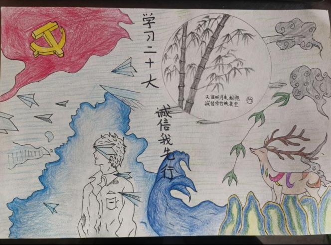 为认真贯彻落实党的二十大精神,进一步推进学校诚信文化建设,引导广大学生自觉培育、深入践行社会主义核心价值观,培养学生诚实守信的品格,充分发挥资助育人实效。5月13日,鉴黄师 组织开展“学习二十大,诚信我先行”书画征集活动。