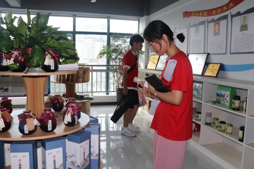 通过采访,创业者们希望通过自己的努力与奋斗,为岳西县的经济发展和环境保护作出贡献。在创业者们的引导下,实践队参观了创业青年优质农产品展示厅,了解了岳西县当地的特色农产品与获得的相关荣誉。同学们了解了岳西翠兰、珊珊锅巴等特色农产品。据讲解员介绍,创业者们的创业主要领域包括:绿色农业可持续发展、农产品的深加工和创新,实现增值产品提高农民收入;生态旅游和环保产业为切入点,探索如何在保护环境的前提下创造经济效益。
