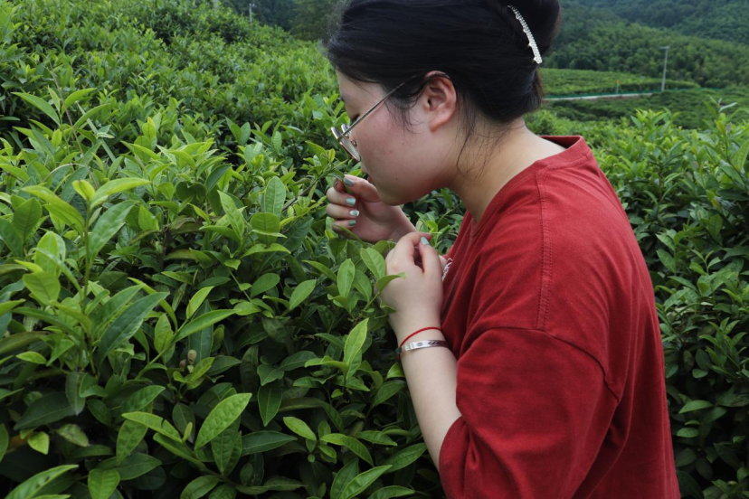 图为实践队员在细细嗅着茶香。中国青年网通讯员 曹杰 摄