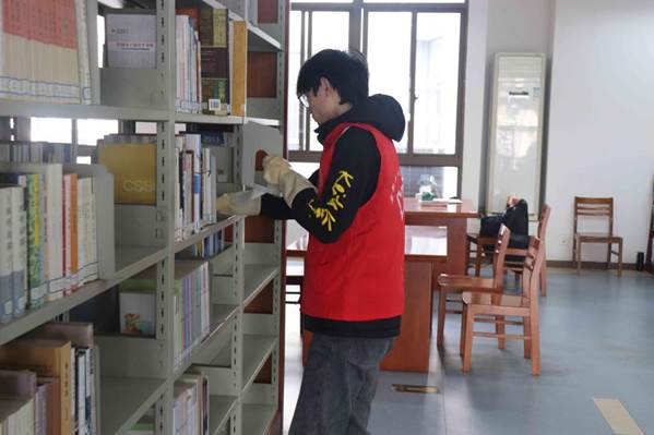 青年志愿者协会与权益部组织同学前往秀山校区振华图书馆进行“美丽图书馆”学习雷锋志愿服务活动。