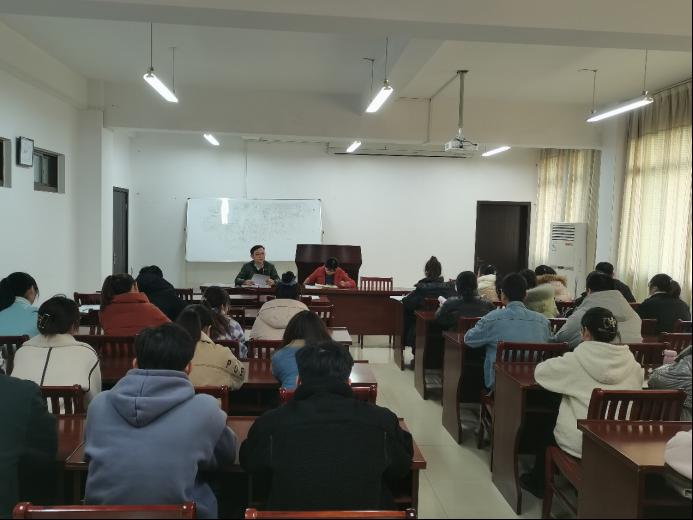 工程造价学生党支部在教A308召开支部党员转正会议,讨论是否接收黄思文等四名预备党员转为正式党员。会议由支部书记赵玉婷主持,支部全体党员参加会议。