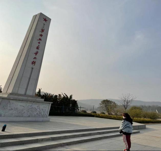 跟随王昕彤迈入基地的刹那,一股沉重的气息就将我们一行人包围,巨大而又刚毅的石碑屹立着,历史的厚重气息,让我怀着无比的敬意,走到了烈士纪念碑面前。滁州,吴头楚尾,自古就有“金陵锁钥,江淮保障”之称。抗战时期,滁州也是著名抗日根据地之一,中原局进驻滁州时,在许多老一辈无产阶级革命家中都留下战斗痕迹,这是伤痕,也是荣耀。一九三九年十二月到一九四零年二月的三次中原局会议,为华中抗日根据地的发展和新四军的壮大奠定了坚实基础。半塔保卫战更是新四军以少胜多的经典战例,也使滁州更加荣光。这载入滁州市烈士纪念碑的碑文,是滁州的历史,也是滁州的光辉,每一个字句标点后,都是无数人的努力与牺牲!