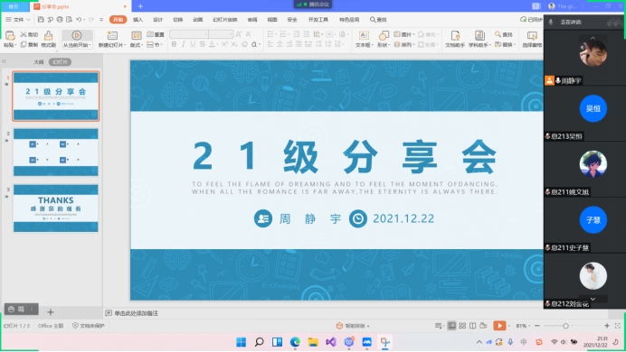 信管源动力协会于线上举办了大学学习生活交流分享会。此次分享会由协会负责人周静宇主持,信管21级新生全体参加。