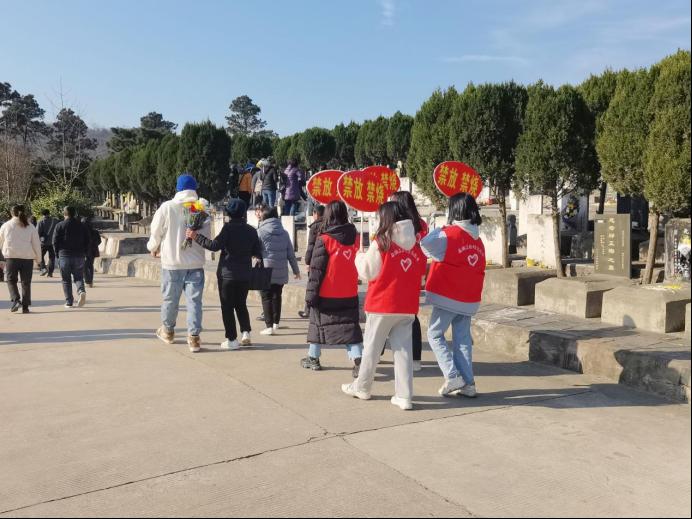 协会通过线上线下等形式对活动进行宣传和组织动员。活动当天,志愿者们来到陵园大门处,通过举告示牌、设立展板等方式对路人宣讲了传统焚烧纸钱的危害,为广大前来祭祖的民众宣扬绿色祭祖的理念,引导人们推行文明低碳祭扫。在志愿者和工作人员的共同努力下,活动在绿色文明的祭扫氛围下顺利结束。