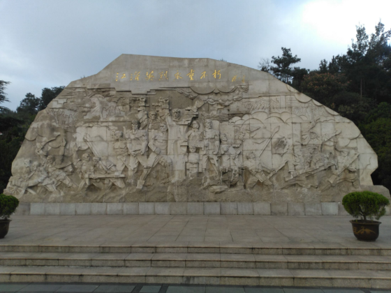 看着石碑上的人们,有的人举着军号军旗,有的人拿着大刀长矛,滚滚浓烟在石像上也被细腻地刻画了出来。英雄烈士们的身影站在最前面,那么高大,他们的身前是战火纷飞,他们的身后是人民百姓。虽然动作不一,神态各异,但是从眼神里,却能感觉到他们透露着同样的坚定。因为他们相信光明终就会来临;他们相信坚持下去就会有希望;他们相信江淮英雄永垂不朽。
