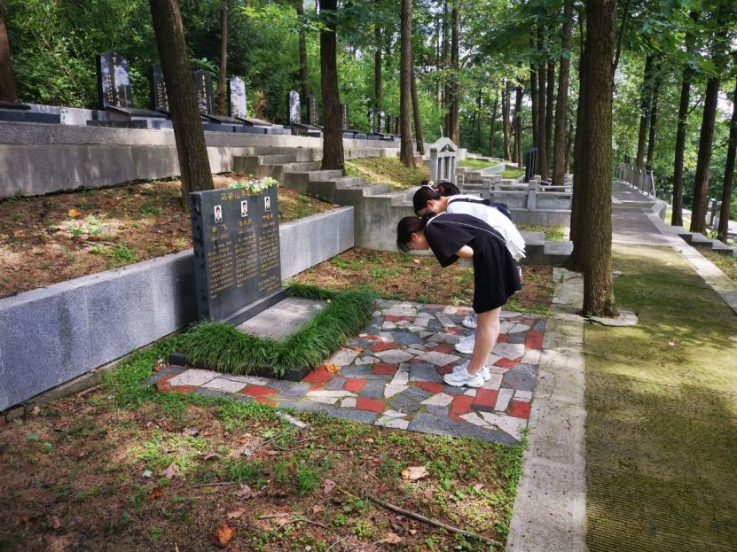 红军墓前布满了余晖,实践队的成员被这样的风景线所吸引。墓区共有16座老红军墓,22座烈士墓。墓园内环境恬静,是对英灵们的告慰与尊崇。这里安葬的都是为国家而牺牲的英雄们,也正因为有这样的英雄,这片华夏土地才有了今日的和谐美好。参观人员都神态严肃,向其鞠躬敬礼。也许,此情此景只有这种方式才能表达对逝去英魂的最高尊敬。新时代下,在铭记历史的同时更要砥砺前行,书写新时代下更恢宏的篇章。实践队员们缓慢并排地走过墓园,在每个墓前都停留数秒,以表尊敬。