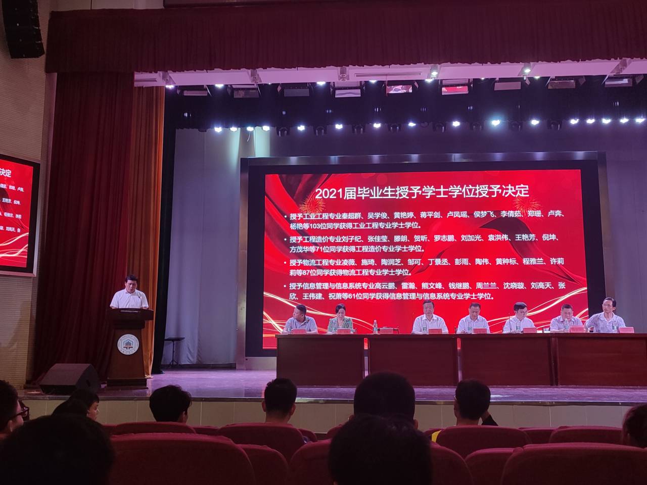 典礼在庄严的国歌声中拉开帷幕。院长汪和平宣读毕业生和拟授予学位名单并致辞。他重温了2021届毕业生在四年中取得的点滴成绩并寄语三点希望:要志存高远,有坚定的理想;要与时俱进,持续地学习;要无畏挫折,乐观地坚持。