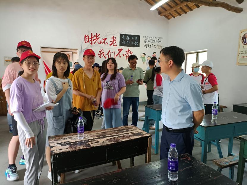 图为实践队员们与学院领导交流参观心得