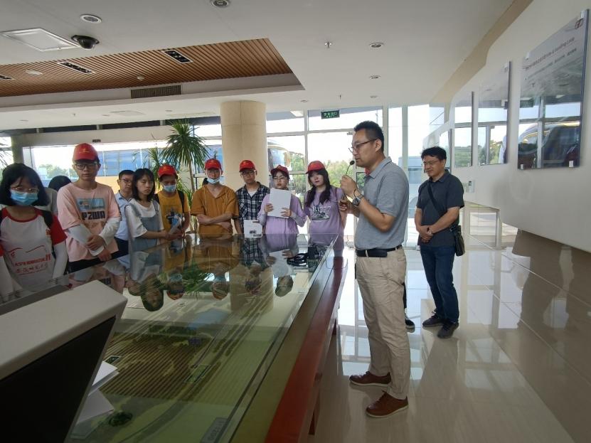 图为上汽通用汽车/泛亚汽车技术中心研发试验中心工作人员在为实践队员们进行汽车试验地段的模型讲解。