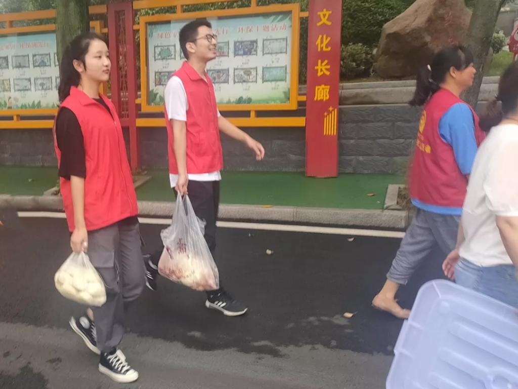 实践队员金睿在家乡当涂县发生洪涝灾害时挺身而出,主动加入志愿者行列,为家乡的防洪救灾做自己力所能及之事。当老人行动不便时,她会和其他实践队员将食堂的饭菜打包好,亲自送到老人面前;当有老人精神不佳,心情低落时,她会和实践队员一起和老人聊天,疏解他们的精神压力。