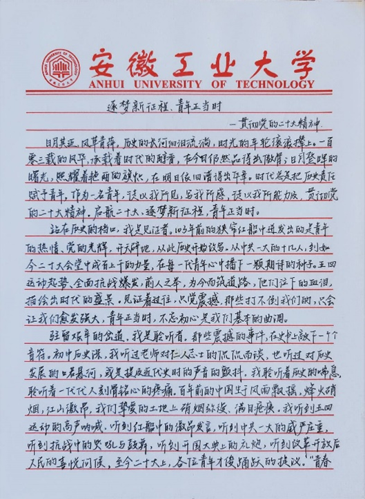 此次征文活动的顺利开展,加深了同学们对党的二十大精神的理解和认识,营造健康向上的校园文化氛围,为学院培养更多有理想、有担当的新时代青年奠定了坚实基础。
