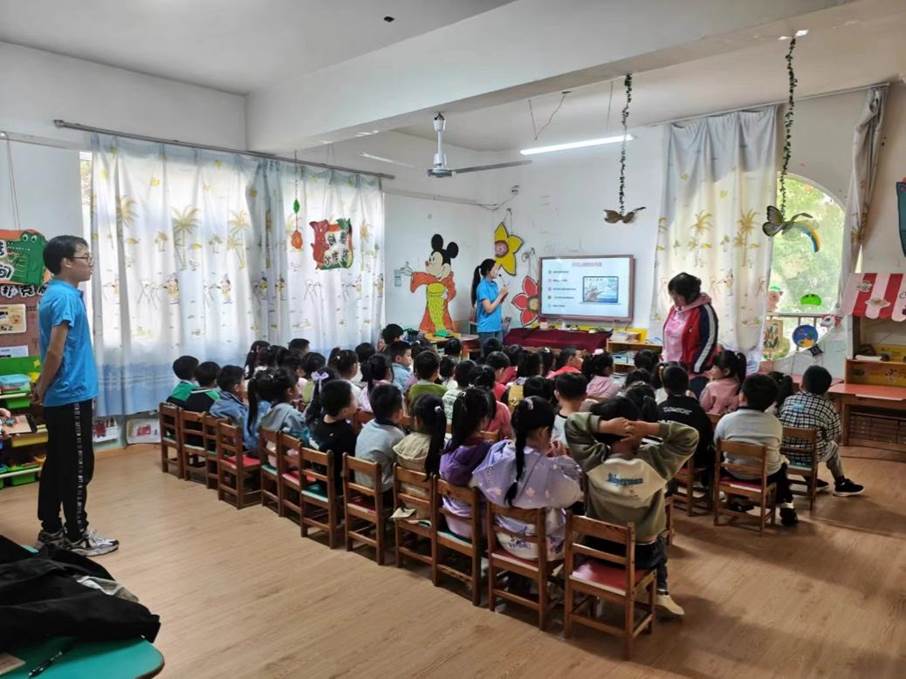 宣讲团介绍了井冈山革命根据地的建立、井冈山精神的内涵,结合历史史实回顾了井冈山革命故事、人物事迹,用简单易懂的语言解释了“坚定信念、艰苦奋斗、实事求是、敢闯新路”的井冈山精神。活动中,宣讲团还设计了互动环节,让小朋友们参与到讲述中来,通过角色扮演、问答游戏、故事手绘等形式,使孩子们在轻松愉快的氛围中感受到井冈山精神的实质。宝贝童年幼儿园的孩子们被精彩的宣讲内容所吸引,他们聚精会神地听讲,积极参与互动。一位小朋友和宣讲队员工222班朱仔仪交流道:“这个暑假我要和爸爸妈妈一起去井冈山看大火炬。”
