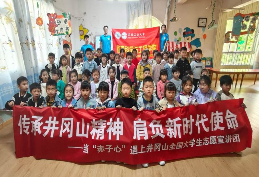 当”赤子心”遇上井冈山全国大学生志愿宣讲团走进花山区宝贝童年幼儿园开展“传承井冈山精神、肩负新时代使命”宣讲活动。