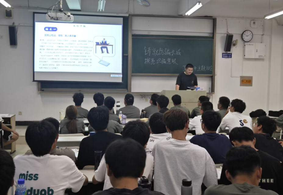 随后,班助们将焦点转向了安全教育的重要方面——电信诈骗与预防溺水。在反电信诈骗环节,结合实际案例,深入解析了遇到诈骗时的应对方法,切实提高新生们的防范意识。在预防溺水方面,引导新生树立安全意识,远离危险水域。