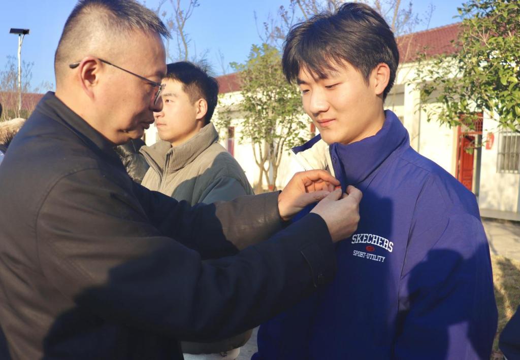 2024年下半年新发展党员名单》。工程造价系学生党支部党员殷雪仪领誓,全体党员面向鲜红党旗,紧握右拳,庄严宣誓,表达了为共产主义奋斗终身的坚定信念。村干部、老党员和与会教师党员为新发展党员佩戴党员党徽。