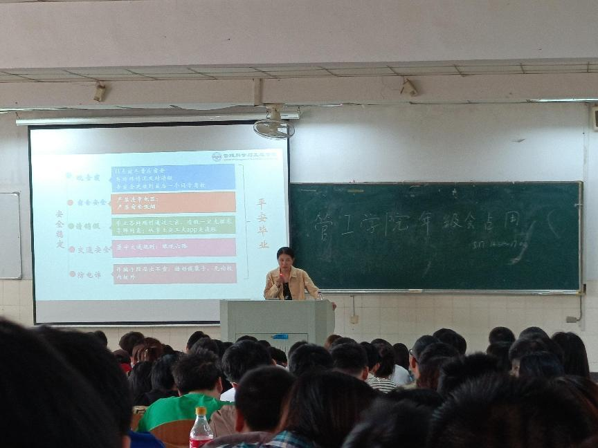 李军慧围绕毕业班工作展开讲解。一是引导同学们认清当前的就业形势,形成先就业再择业的观念,善于利用周边资源,提高主动性,把握好机会。二是进一步强调校园安全稳定工作,引导广大同学提高安全意识,严格遵守学校各项管理制度。三是对西部计划再动员,主要围绕报名条件、上岗保障、优惠政策等方面进行讲解,鼓励青年学子将个人理想融入党和国家事业之中。四是针对同学们关注度较高的毕业生党团组织关系转接和档案转接、《2024届毕业生登记表》填写等问题进行详细指导。