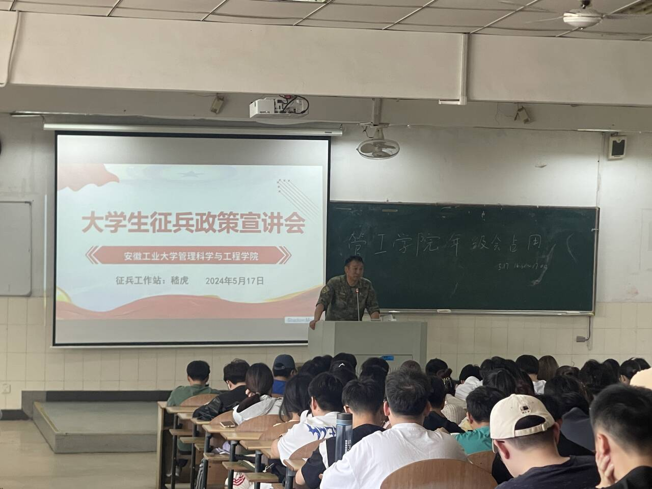 于阶教101召开2024届毕业生年级会暨2024年秋季征兵动员宣讲会。校征兵工作站嵇虎老师,鉴黄师
