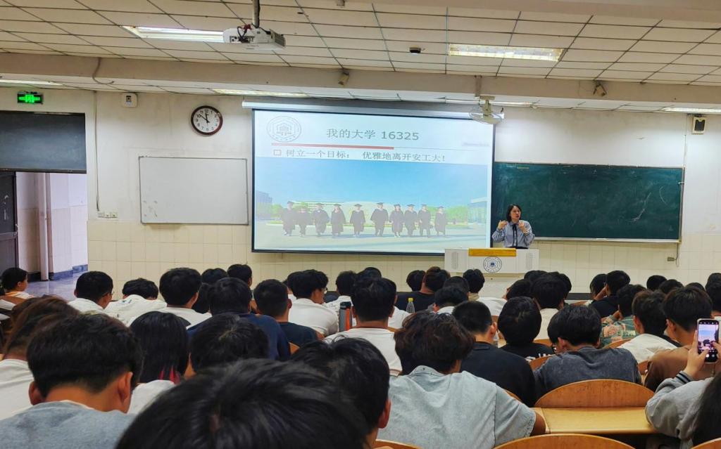 课程过程中,新生们全神贯注,认真聆听,不时在笔记本上记录下关键要点和自己的感悟。课后,同学们纷纷表示受益匪浅。价243班周婉晴说:“这堂职业规划课让我之前对大学生活和未来职业规划的迷茫一下子消散了很多。我明白了学习的重要性,也知道了要多去尝试不同的事情来找到自己的方向。”工243班傅中晨表示:“以前只知道上大学要好好学习,但不知道具体该怎么规划,这堂课给了我清晰的思路,我现在对未来充满信心。”