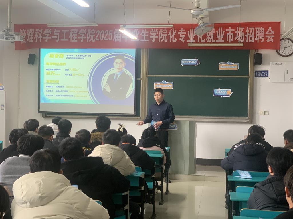 2021级在教D402和501教室成功举办了学院化、专业化招聘会。本次招聘会邀请了万纬物流和瑞顺物流两家知名企业来校宣讲,作为学院深化产教融合的重要实践,本次招聘会通过企业宣讲、行业解读、互动交流三大模块,为2024届毕业生搭建起精准就业服务平台。招聘会前,学院党委副书记、纪委书记、副院长赵颖、毕业班辅导员任静、钱丹丹与企业负责人就招聘情况和后续合作进行了深入交流。