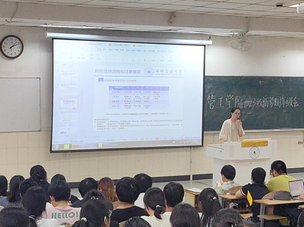 在阶教101召开“明方向以砺远志,积跬步而至千里”2023级年级大会,会议由2023级辅导员曹宇、钱丹丹主持,全体2023级学生参加。