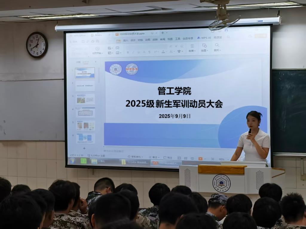 在东阶101教室组织召开2025级新生军训动员大会。院党委副书记、纪委书记、副院长赵颖,新生辅导员李思雨及全体2025级本科生参加了本次动员会。