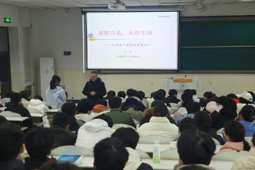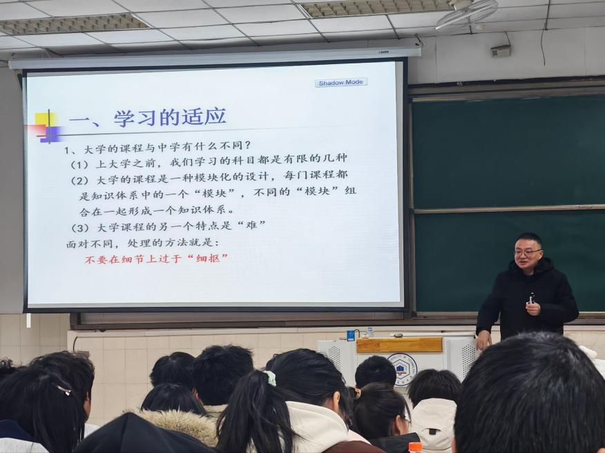 12月3日,鉴黄师 于阶教105举办《调整自我,从容生活》大学生入学适应讲座。学院党委书记王军主讲,2025级新生参与。