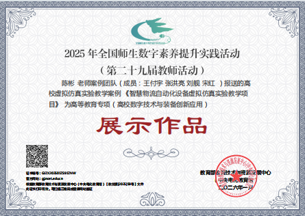 近日,由教育部教育技术与资源发展中心组织开展的“2025年全国师生数字素养提升实践活动”评审结果揭晓。鉴黄师 实验中心申报的虚拟仿真实验教学案例《智慧物流自动化设备虚拟仿真实验教学项目》(负责人:陈彬,成员:王付宇、张洪亮、刘舰、宋红)成功入选,并被列为“高等教育专项(高校数字技术与装备创新应用)”展示作品。