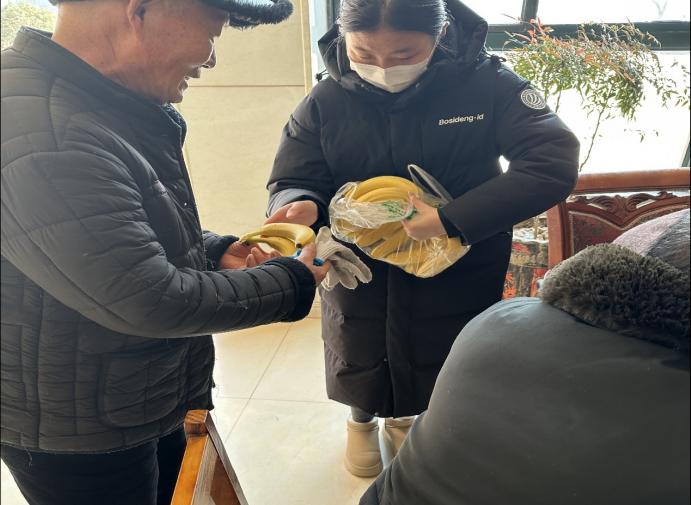图为实践队员为老人们分发自购的香蕉。通讯员 姚敏敏 摄