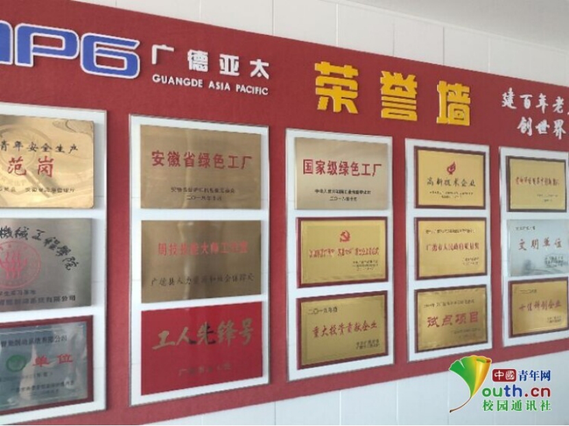 图为广德亚太获得的荣誉称号。中国青年网通讯员 方正 摄