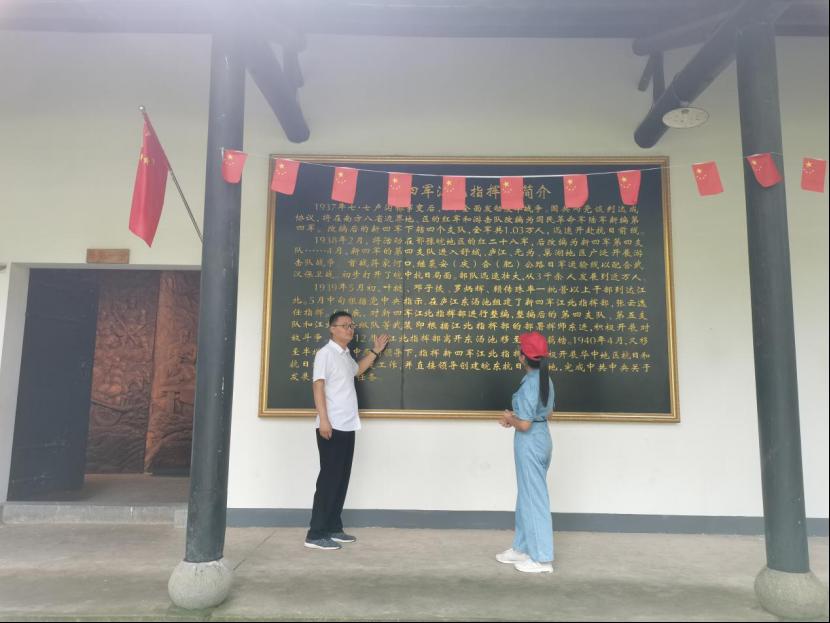 图为工作人员为实践队员讲解新四军江北指挥部的发展史。