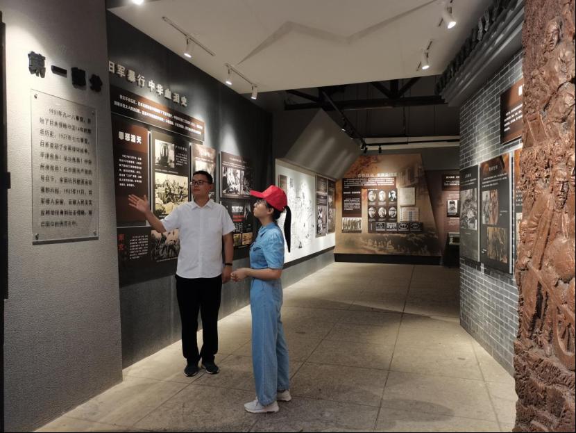 图为工作人员为实践队员讲解新四军抵抗日军暴行的血泪史。