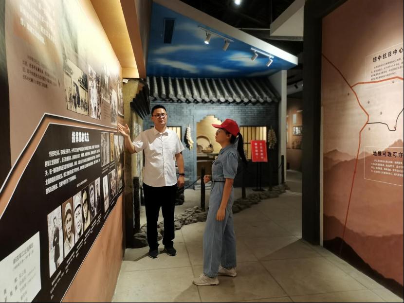 图为实践队员与工作人员交流探讨新四军的革命精神。