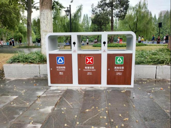 图为公园内的分类垃圾桶。