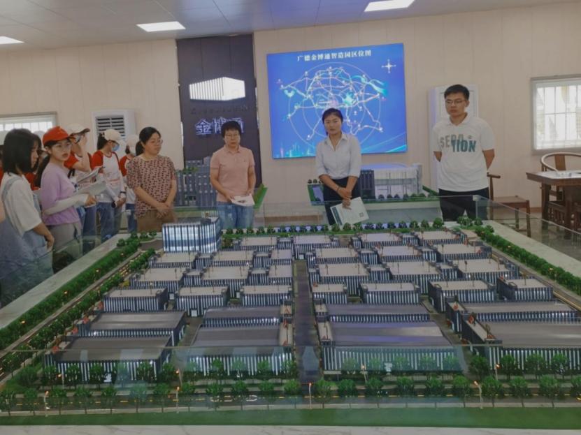图为工作人员为实践队员介绍孵化园区。