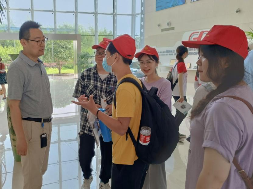 图为工程师为实践队员解答疑惑。