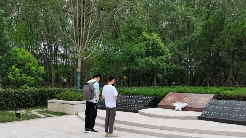 图为实践团员在英烈园为国家献出生命的烈士哀悼缅怀。