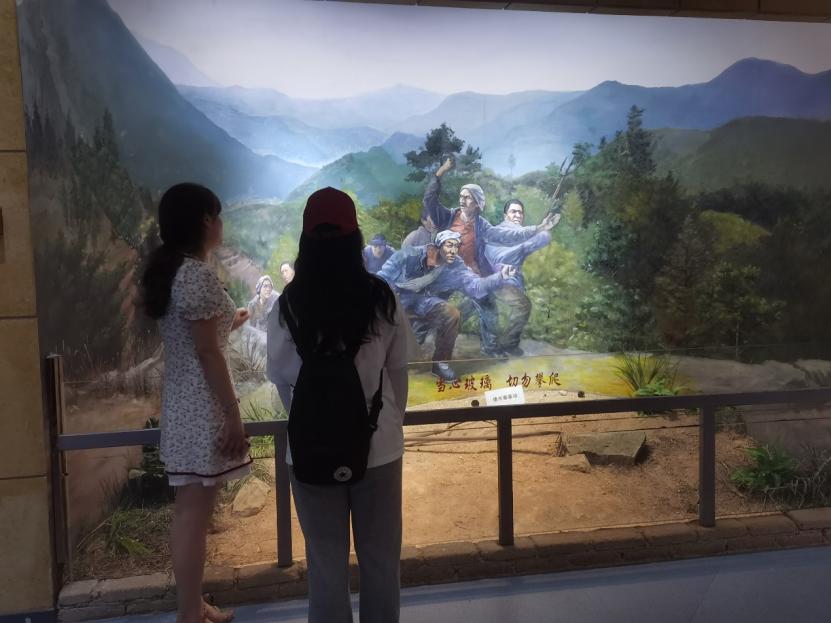 图为队员参观纪念馆内岳西县非遗文化。