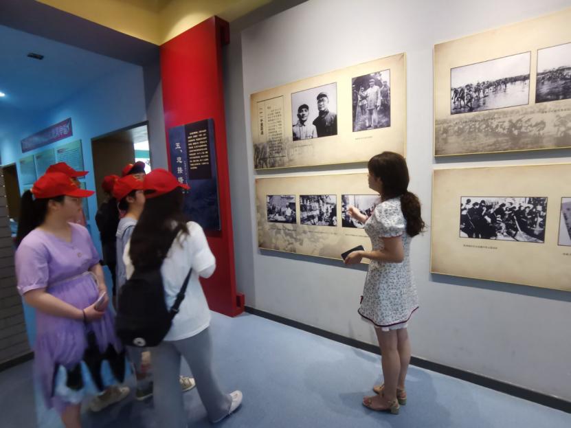 图为当地人员为实践队员介绍中央红军独立第二师司令部纪念馆内烈士。