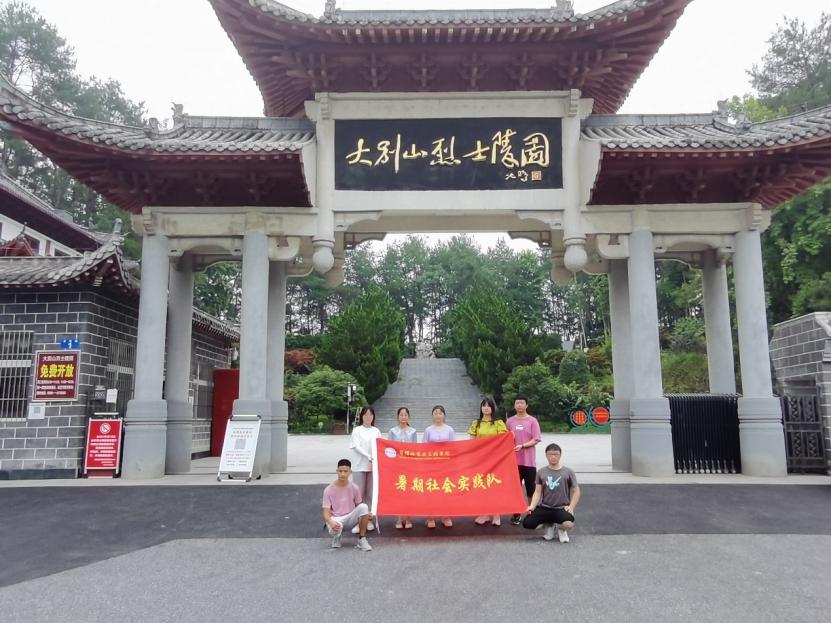 图为实践小队在大别山烈士陵园大门前纪念合影。