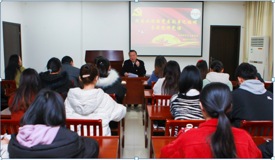 调研指导学院党建工作,并为全体党员师生讲授题为《加强理论学习,推进高质量发展》专题党课。