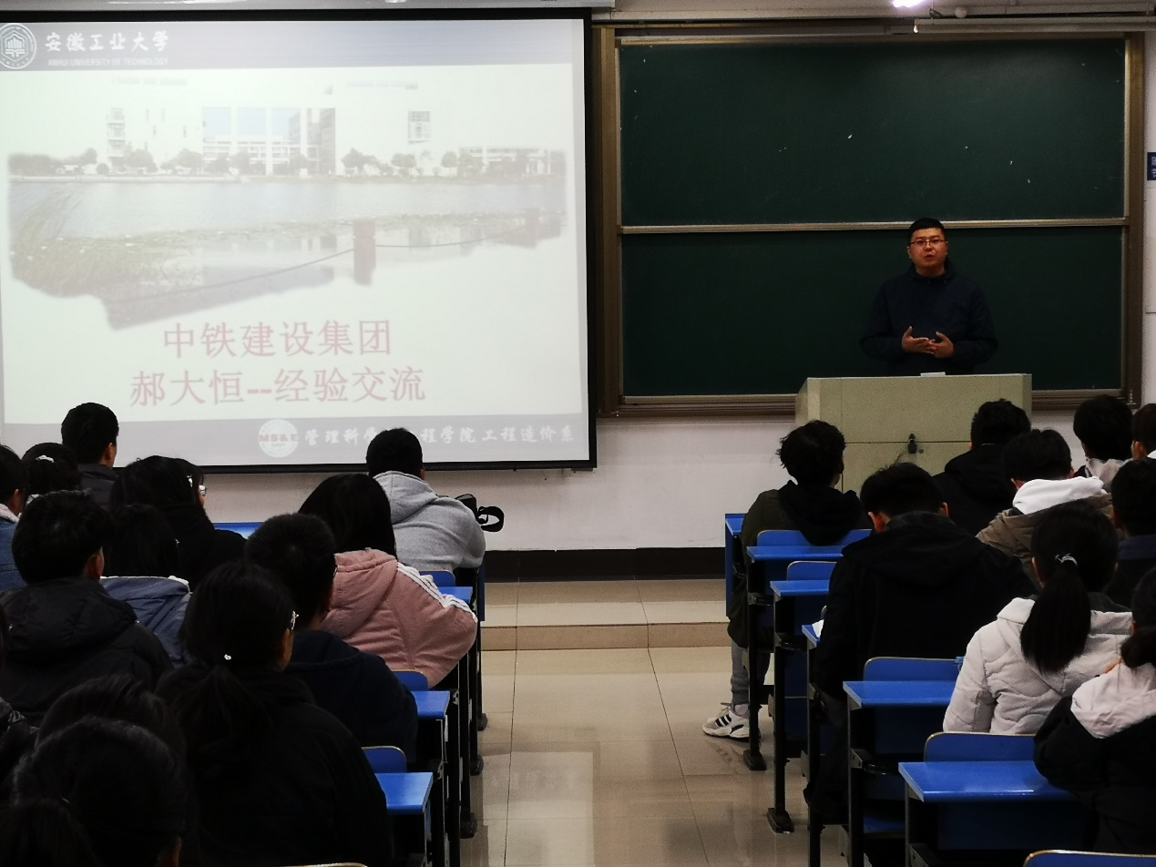 邀请中铁建设集团南京区域高级成本经理郝大恒于2020年12月1日上午在汇文楼开展了工程造价的发展现状与人才能力需求专题讲座。