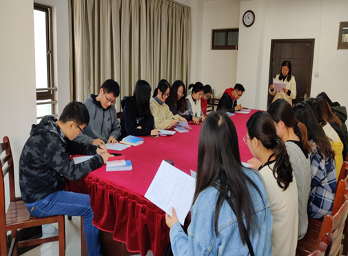 在教A302召开研究生教育服务质量调查会议,会议由研究生党支部书记邹家华主持,部分党员和研究生代表参加。