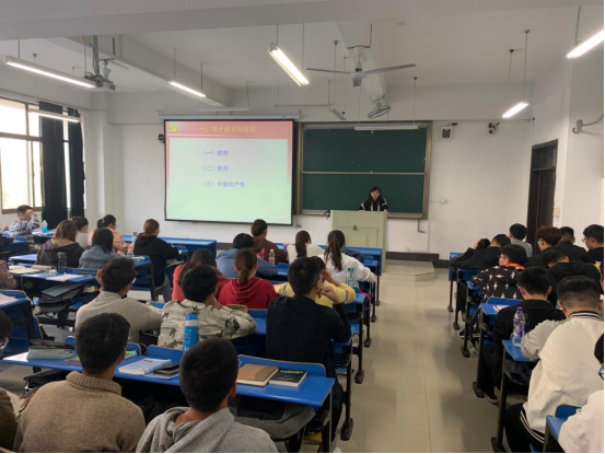 课上,洪芳对政党和党员的概念及内涵进行了详细阐述,着重介绍了中国共产党的成立过程及现有的队伍结构。她指出,近年来中国共产党的队伍结构持续优化,党员质量不断提高。接着,她从党员的基本条件和党员发展程序两个方面进行了具体说明。她强调,要用先进的思想武装头脑、指导实践,牢记“全心全意为人民服务”的宗旨,牢固树立无私奉献的人生观和价值观,充分发挥先锋模范作用。
