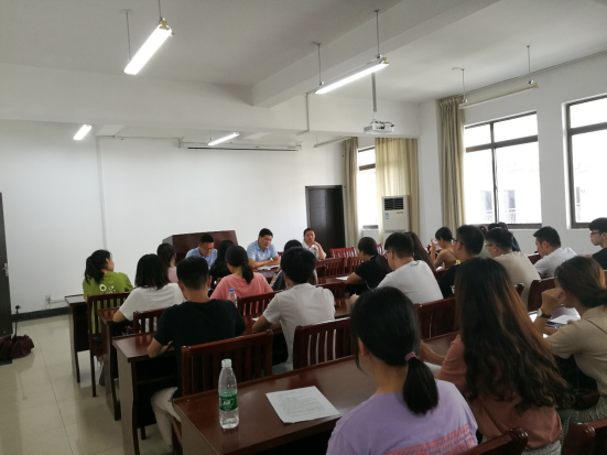 9月10日中午,鉴黄师 在汇文楼A308开展2019级研究生新生学科专业教育,2019级全体研究生新生参加,学院院长汪和平教授主讲,研究生秘书邹家华和研究生辅导员邢维迢列席会议。