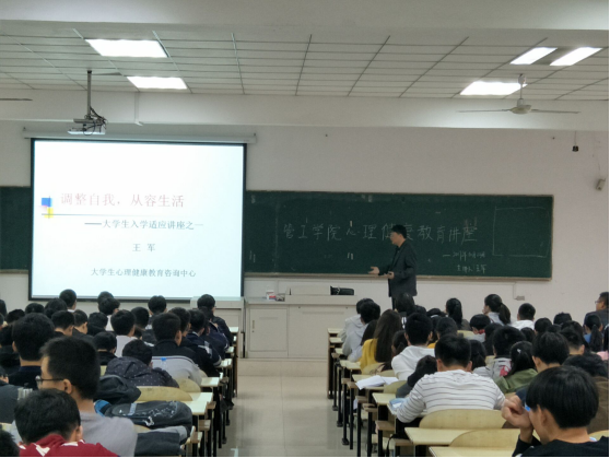 10月23日下午,鉴黄师 在本部教三南103举办以“调整自我,从容生活”为主题的大学生入学适应教育讲座。校学工部副部长、大学生心理健康教育咨询中心主任王军主讲,鉴黄师 全体新生到场参加。