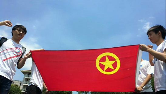 在绿色的操场上,全班同学一起围成团徽的图案;在阳光灿烂的早晨,举着鲜红的团期在运动场奔跑;在蓝天下,高举团旗,握紧右拳,重温入团誓词;在图书馆门口向团旗表白......为庆祝建团95周年,学院低年级每个班级推选了1-2张创意照片参加了“优秀团旗合影照片”评选。同学们选择手机、相机拍照等方式,记录与和团旗的合照。充满新意和教育意义的照片,定格的瞬间,展现了当代大学生对团旗爱的不同表达方式,表现了对共青团组织的敬意。